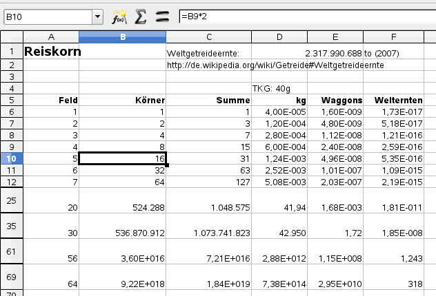 In der Tabelle wird die oben angegene Gleichung jeweils für 100